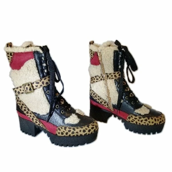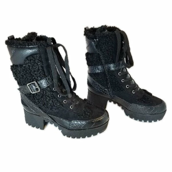 Lace Up Platform Bootie With Side Zipper And Fur