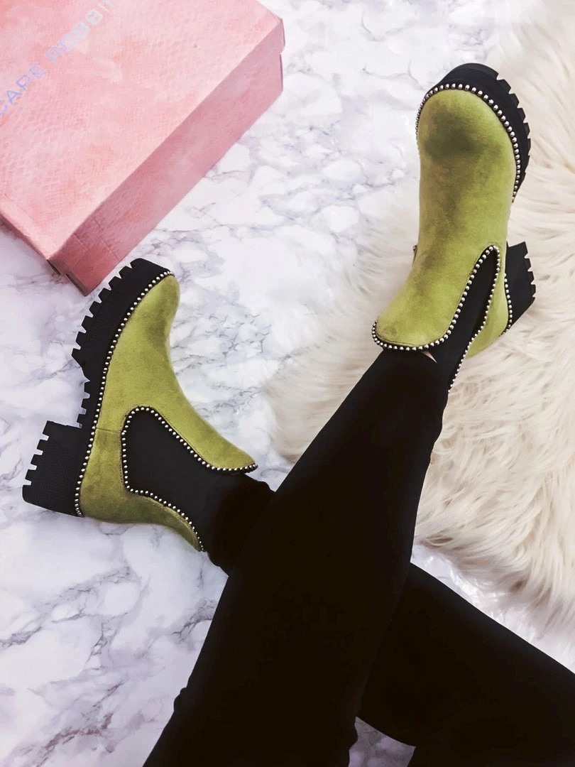 A piece of art all on its own, with a thick jet black heel and an olive green upper, finished in metallic beading, is the lug sole chunky heel Women’s Boot. With lettings, trousers, and tights, and paired with a colorful sweater and jumper, they look fantastic. No two pairs would be exactly similar because of the design of the pattern. Each pair is special in its own right.
