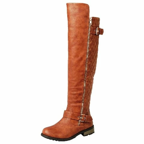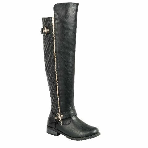 Womens Buckle Strap Quilt Shaft Knee High Boots
