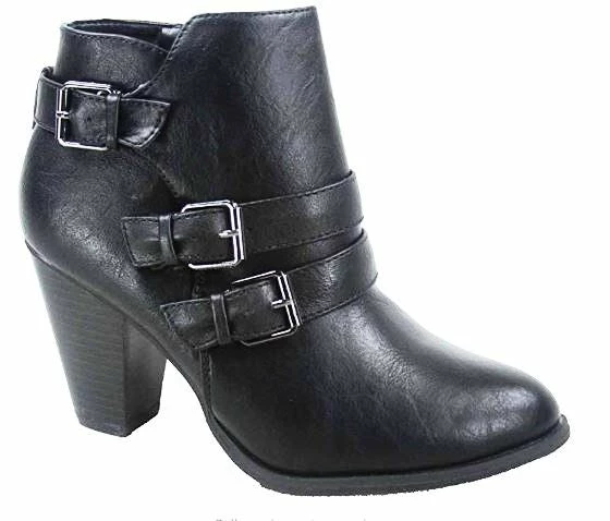 Women’s Fashion Chunky Heel Buckled Strap Ankle Booties