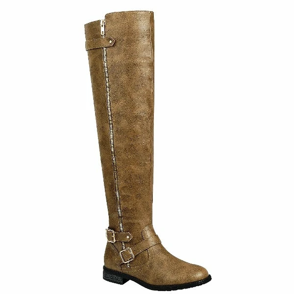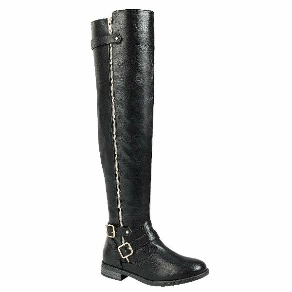 Block Heel Side Zip Dual Buckle Details Thigh High Riding Boots