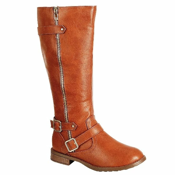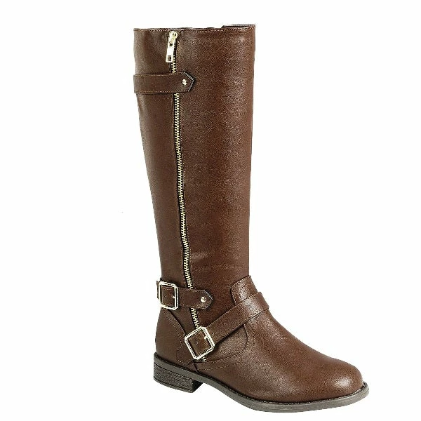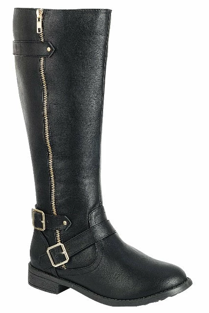 Knee High Low Block Heel Inner Zipper Riding Boot