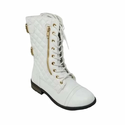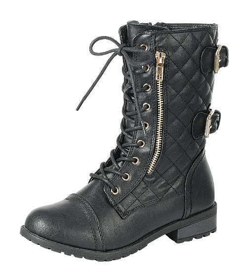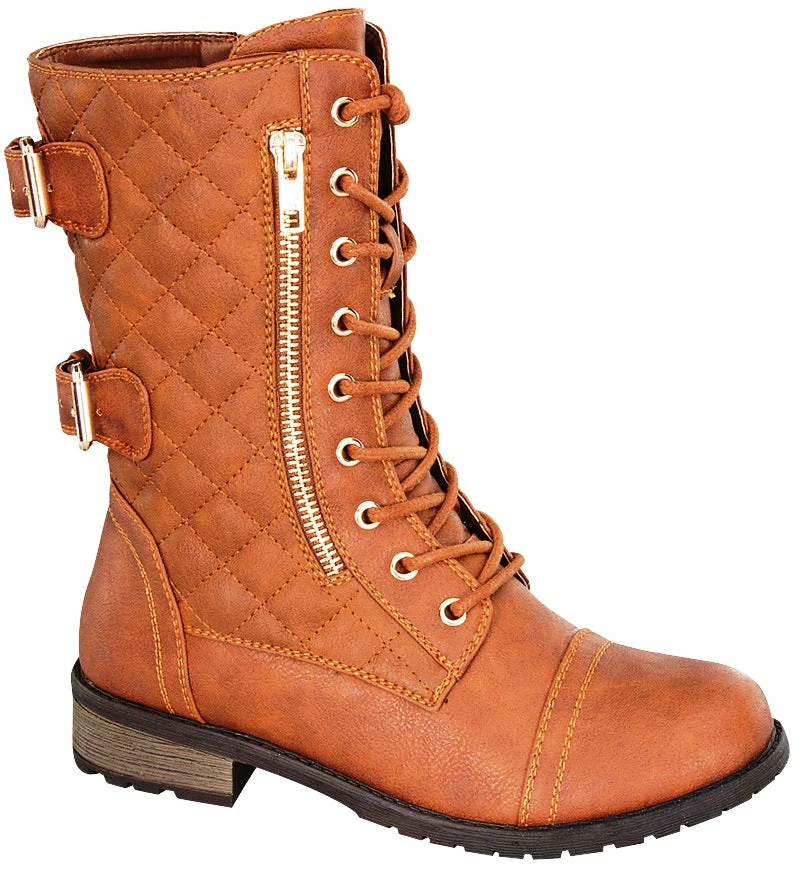 Military Leatherette Dual Buckle Zipper Lace Up Boots