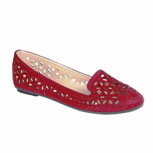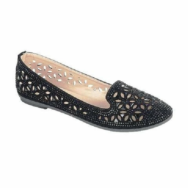 Comfortable Ballerina Rhinestone Laser Cut Loafer Slip-on Flat Shoes