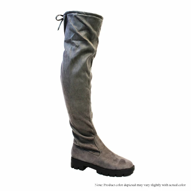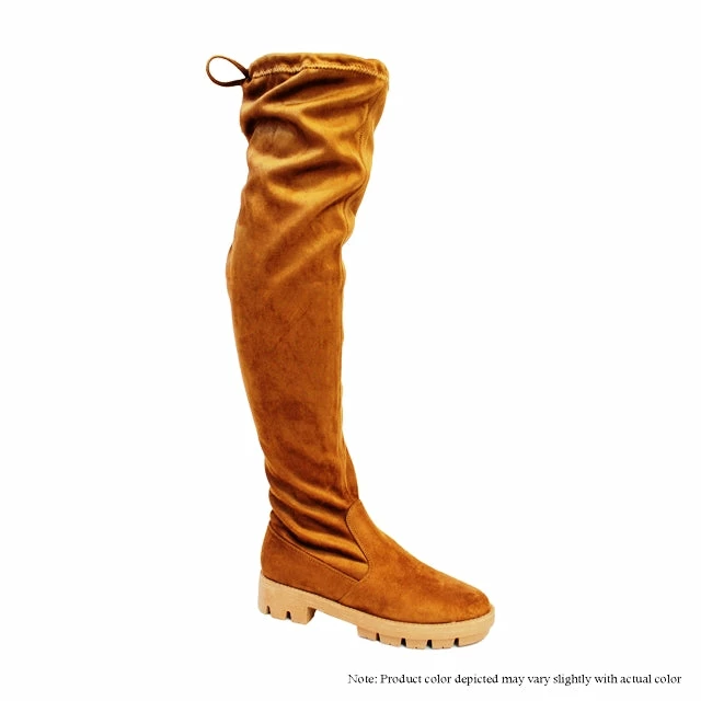 The fitting over the knee shaft would magically lend your legs a lengthening appearance. They feature a faux suede leather stretch, stitching detail, almond toe, low chunky heel, and closure with flexible drawstring links. Lightly cushioned insole finish. These eco-friendly walking shoes let you strut in style. A surefire way to round off every ensemble is these thigh high babies.