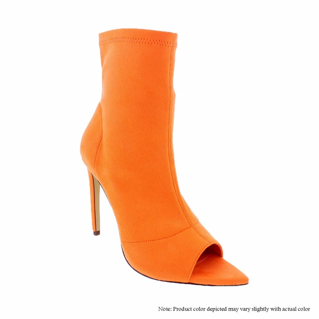 Toe Out Stiletto Heel Mid Calf Bootie with side Zipper