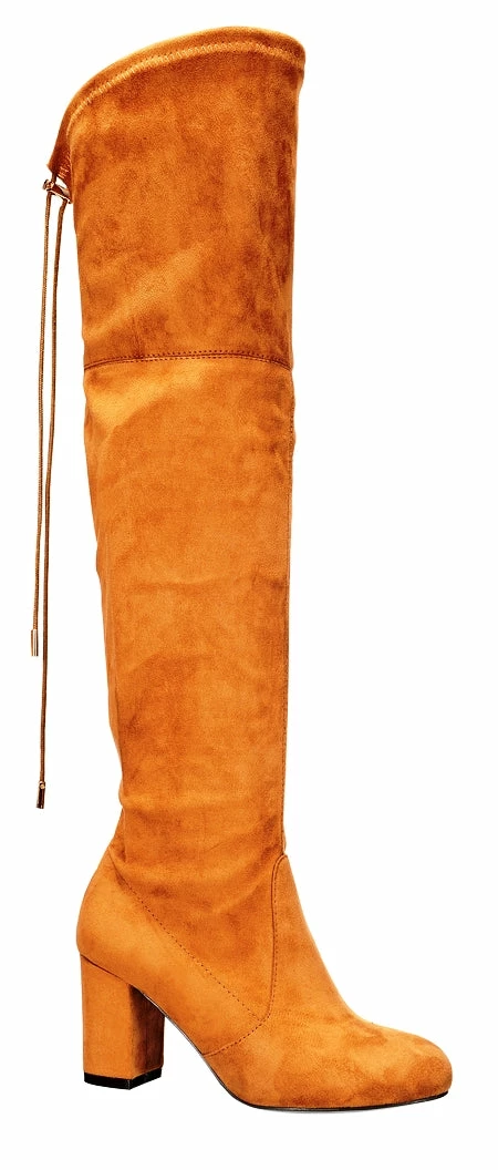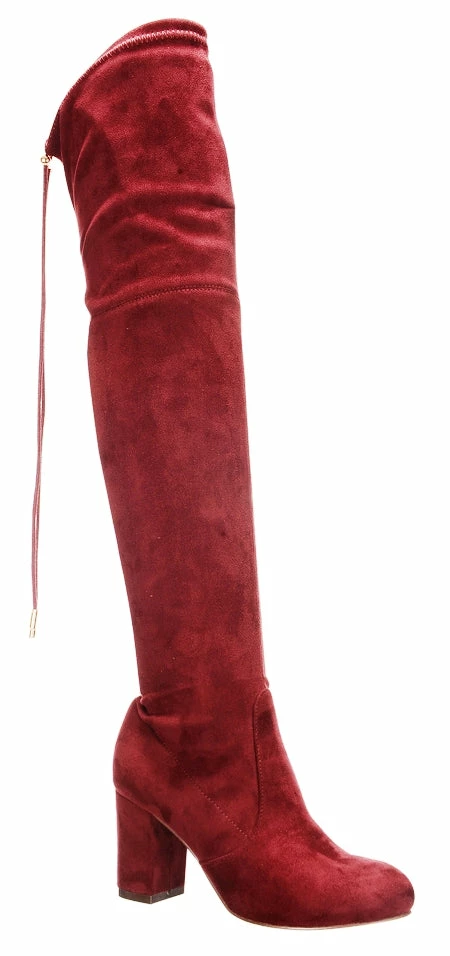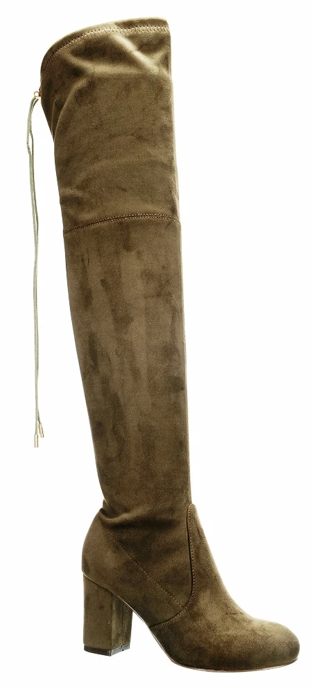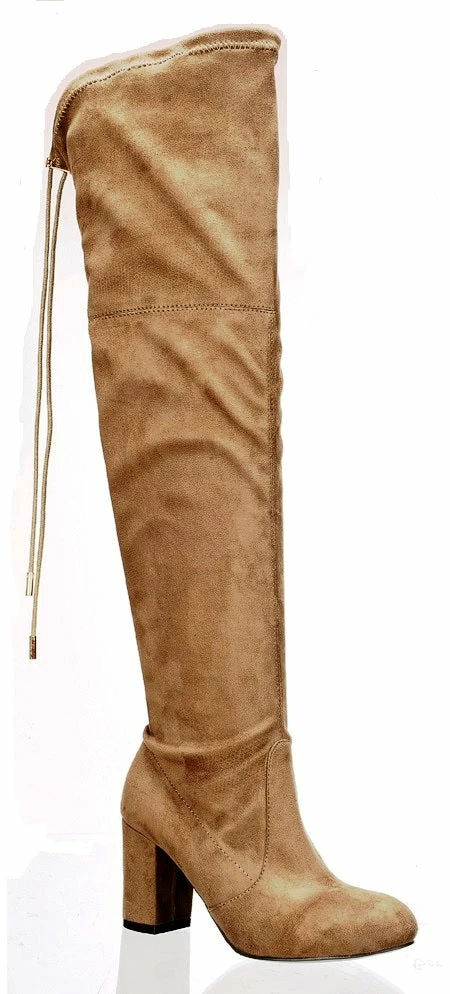 Block Heel Thigh High Suede Boots