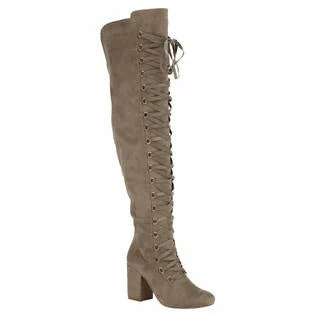 Lace up suede over knee high heel boot. Boots that rise to the knee, or just below or above, are knee high boots.