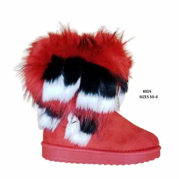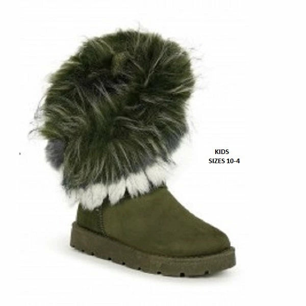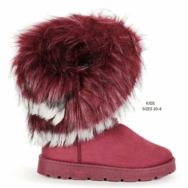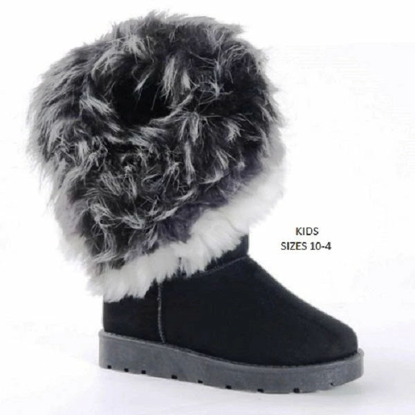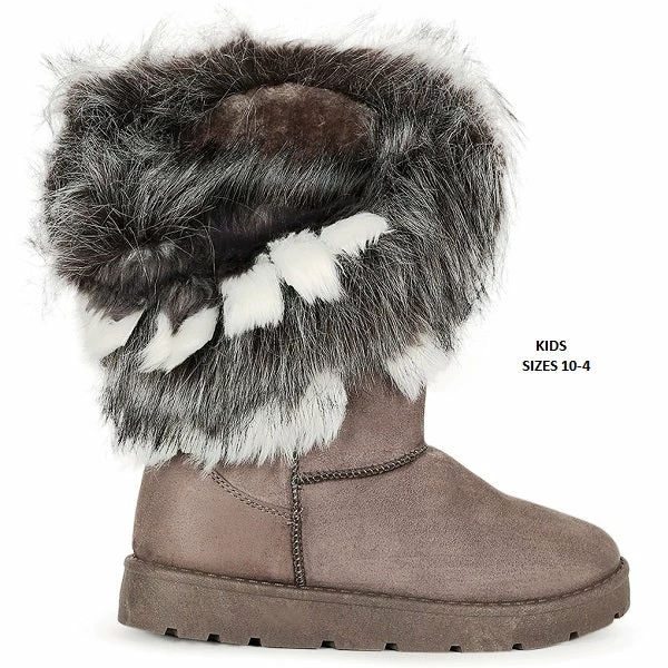 Kids Asymmetrical Fur Collar Suede Round Toe Flat Boots