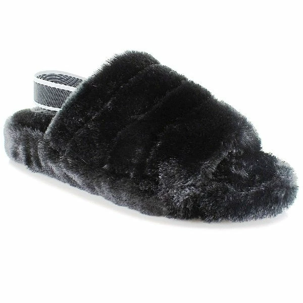 Comfy Fluff Faux Fur Elastic Slingback Wedge Sandal